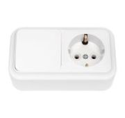 Блок состоит из выключателя трехклавишного и розетки открытой установки. Материал корпуса изготовлен из пластика АБС, обеспечивая прочность и долговечность изделия. Степень защиты блока – IP20, что обеспечивает защиту от пыли и посторонних предметов. Возможность горизонтальной и вертикальной установки.